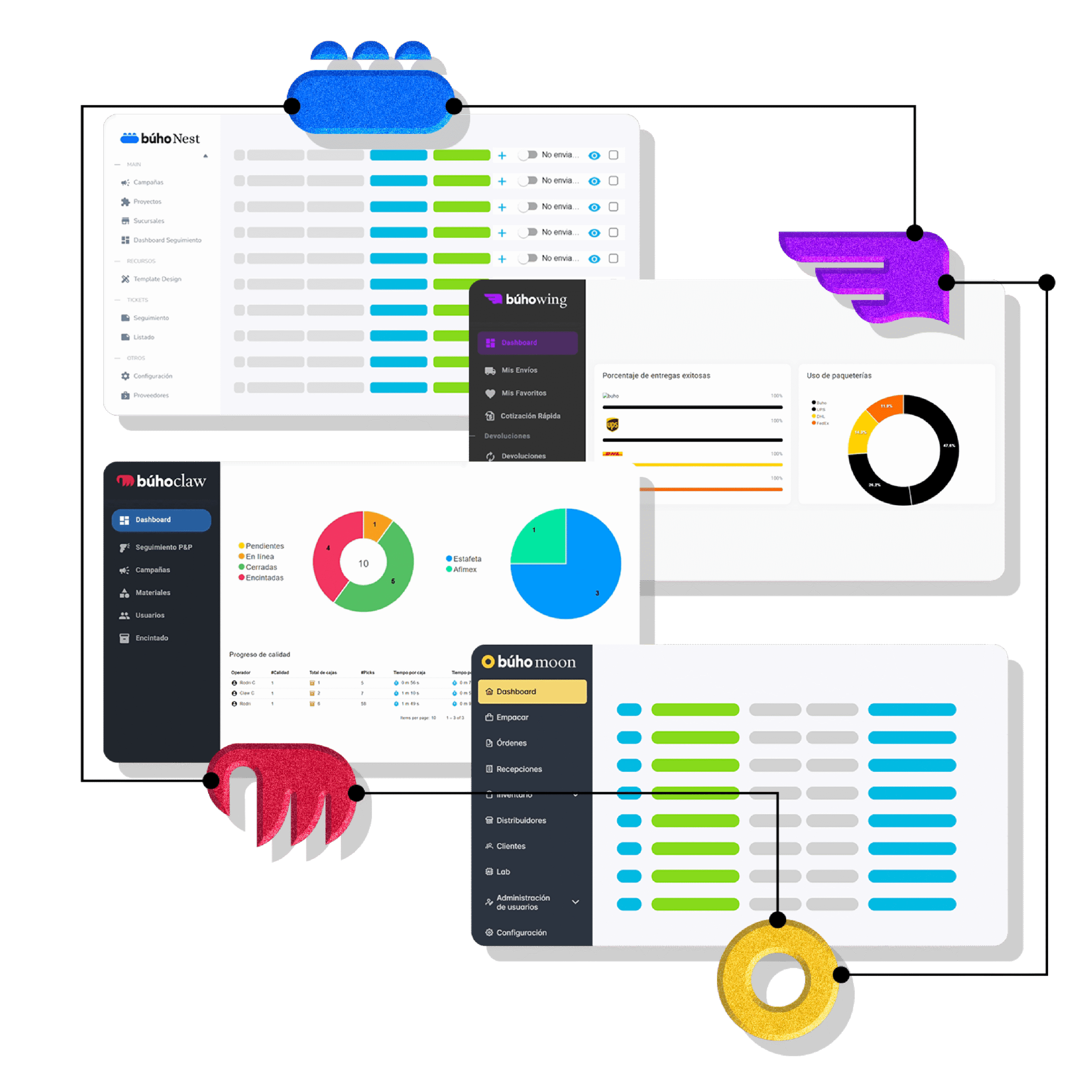 El ecosistema digital de Búho une cada etapa de tu operación para convertir cualquier proceso en una experiencia más eficiente, automática y precisa.